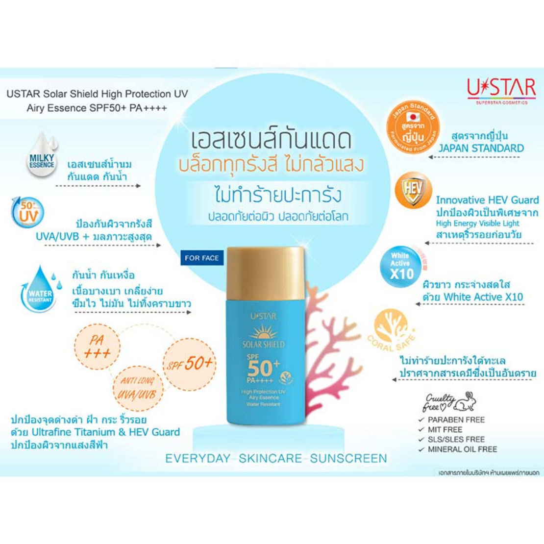 Ustar เอสเซนส์กันแดดเนื้อน้ำนม SPF50+ Pa++++25ml. + 10 มล.